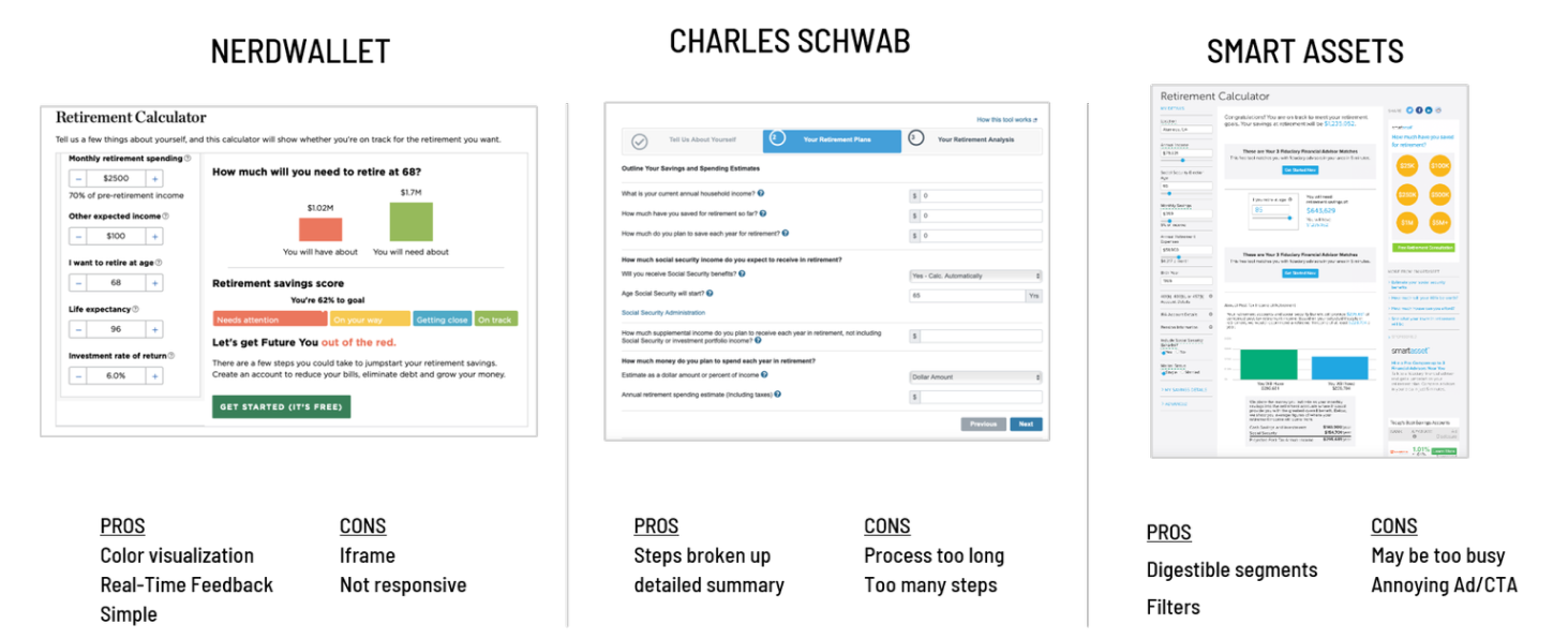 Successful delivery of low-barrier entry calculator for middle-class clients that want’s to estimate their retirement goals.